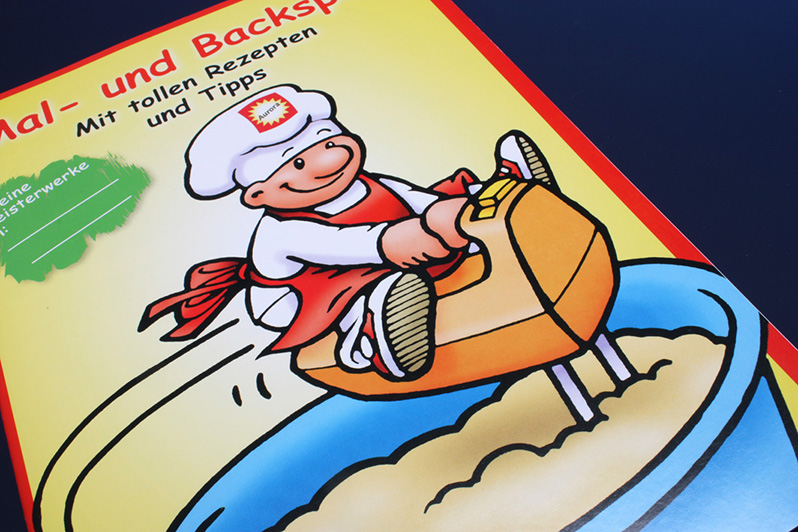 Gestaltungen von Back- und Malheften für Aurora Mühlen GmbH in Zusammenarbeit mit Blattwerk Media OHG, Recklinghausen